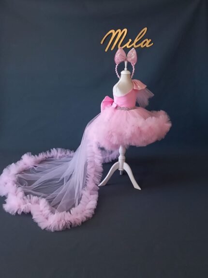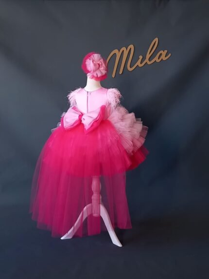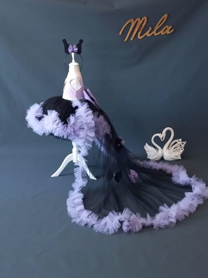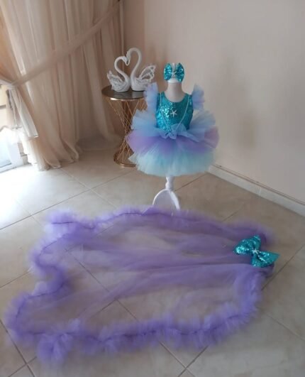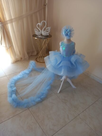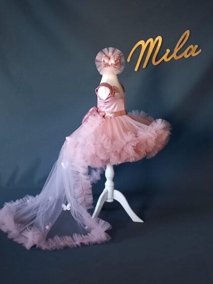 dışı mat saten, içi %100 pamuk astarlıdır. etek ucu ve kuyruğu hayal tül ve kristal tül ile dikilmiştir.